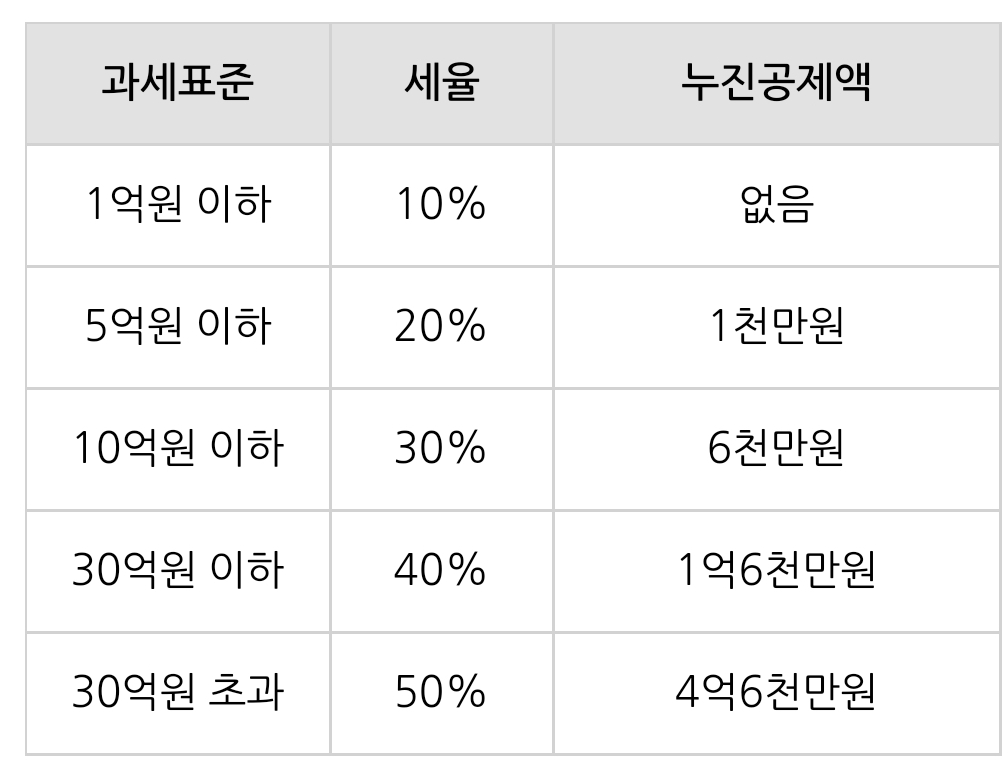 먼저 증여세 세율은 아래와 같습니다