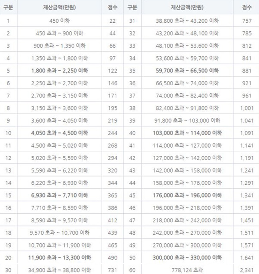 지역의료보험에서 산정하는 재산은 자동차, 재산(주택,토지,건물 등), 그리고 소득인데 이 3가지 각 점수기준은 아래 사진으로 띄워드리겠습니다.
