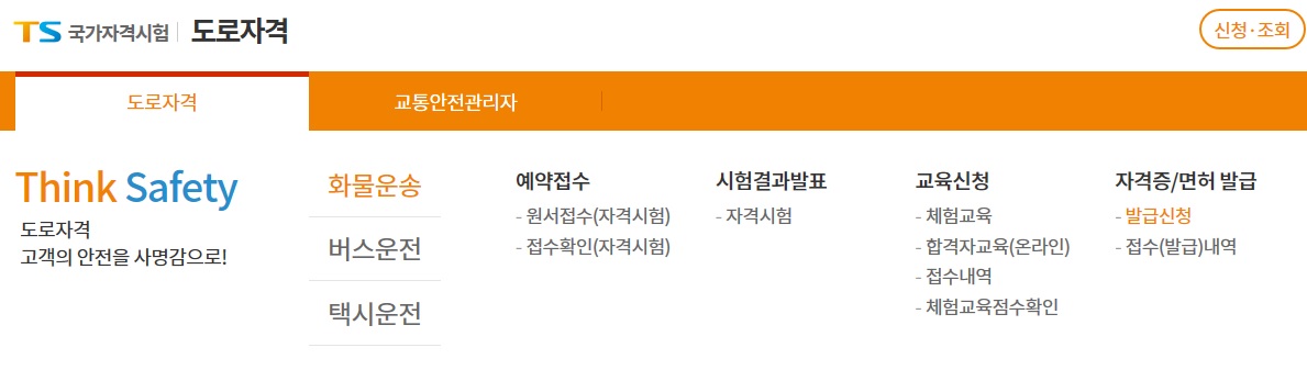 1) 한국교통안전공단 홈페이지를 통해 온라인 화물운송자격증 재발급 신청