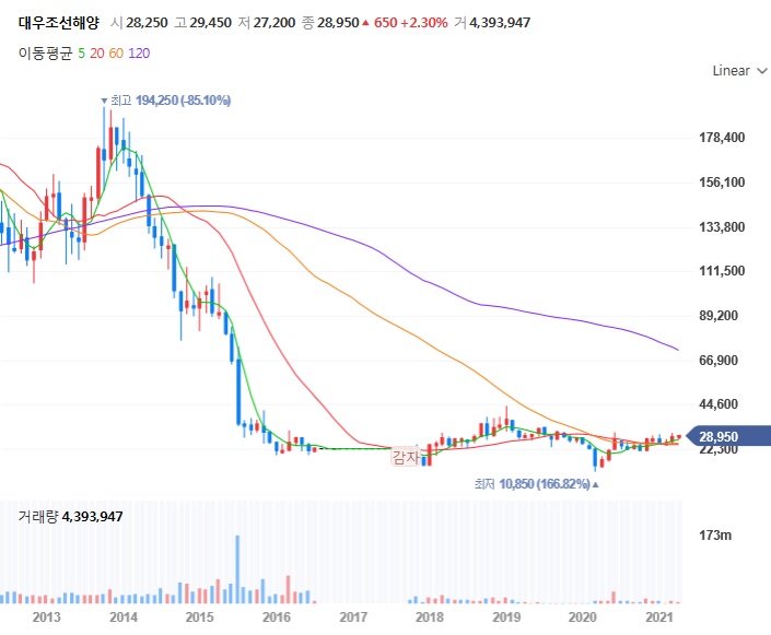 오늘은 대우해양조선입니다. 사실 종목의 정확한 이름은 대우해양조선이 아닌 대우조선해양인데요. 뭐 해양조선이나 조선해양이나 별 차이가 있겠습니까?