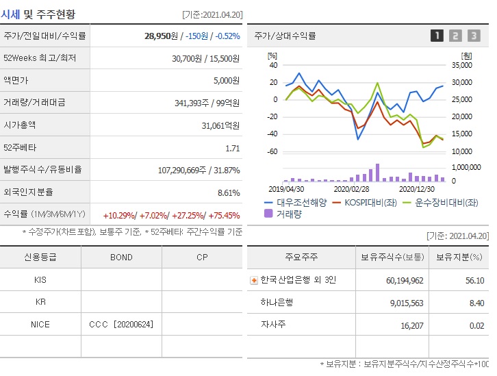 조선주는 잘 몰라서 쓸게 별로없네요. 아무튼 대우해양조선에 투자하시는데 참고가 되셨으면 합니다.