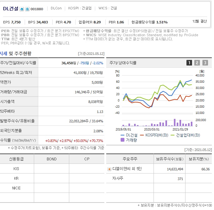 경쟁업체인 타 건설사는 대부분 per가 8 내지 9 정도 되며 업종평균 per가 12정도 되는데 dl건설은 per가 4인걸 보면 확실히 타 건설주들에 비해 저평가인 것 같습니다.